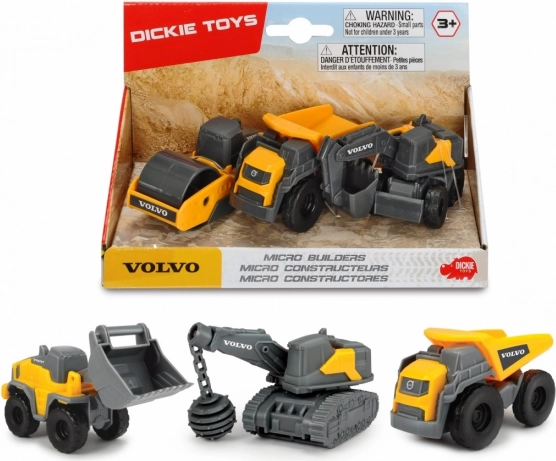 Set di 3 veicoli da costruzione Volvo: Rullo, Ribaltabile e Escavatore