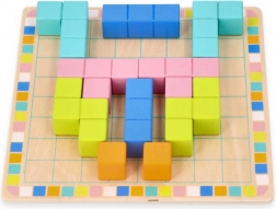 Immergeti nel mondo della logica e della creatività con questo affascinante puzzle di legno in stile Tetris di AdamToys. I bambini possono comporre figure secondo le carte o inventare costruzioni proprie. I blocchi possono essere usati non solo sulla piattaforma, ma anche per creare costruzioni spaziali. Il gioco sviluppa in modo divertente pensiero logico e analitico e contemporaneamente migliora abilità manuali.