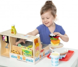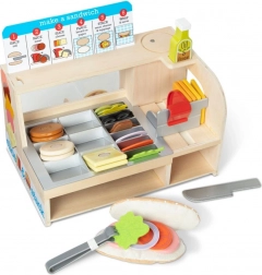 Questo realistico bancone per panini permette ai bambini di combinare a piacere pane, formaggi, verdure e salse. I pezzi in legno e feltro sono piacevoli al tatto e resistenti, per un gioco quotidiano che dura nel tempo. Sono inclusi anche un’organizzazione chiara degli ingredienti e semplici istruzioni illustrate che guidano i bambini passo dopo passo.