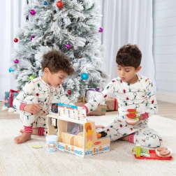 Il gioco del negozio o del chiosco sviluppa comunicazione, immaginazione e autonomia. Grazie alla struttura robusta e all’organizzazione intelligente, il set è ideale per la casa e per l’asilo.