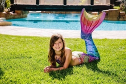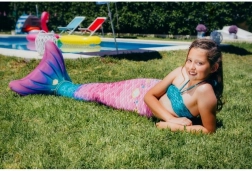 La pinna cattura l'attenzione con i suoi colori vivaci che sfumano dal verde al rosa, offrendo un'atmosfera giocosa e fantasiosa al nuoto.