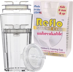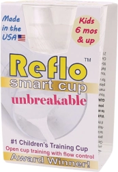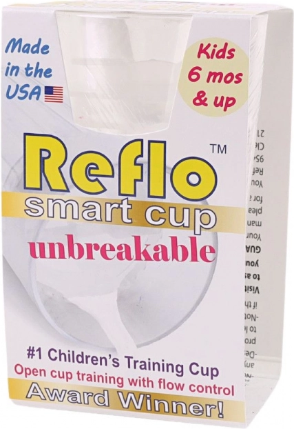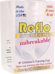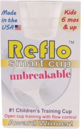 Scopri la tazza infrangibile Reflo, progettata per facilitare l'apprendimento al bere dei bambini. Questo prodotto è perfetto per i bambini dai 6 mesi in su, realizzato con materiali sicuri e duraturi che rispettano le norme europee EN14350-1 e BS EN14350-2.