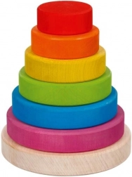 La torre impilabile arcobaleno in legno è un giocattolo ideale per i piccoli bambini, che combina divertimento e apprendimento. Gli anelli di legno vengono infilati su un’asta dalla dimensione più grande alla più piccola, aiutando non solo a sviluppare la motricità fine, ma anche la pazienza e la risoluzione di compiti più complessi.