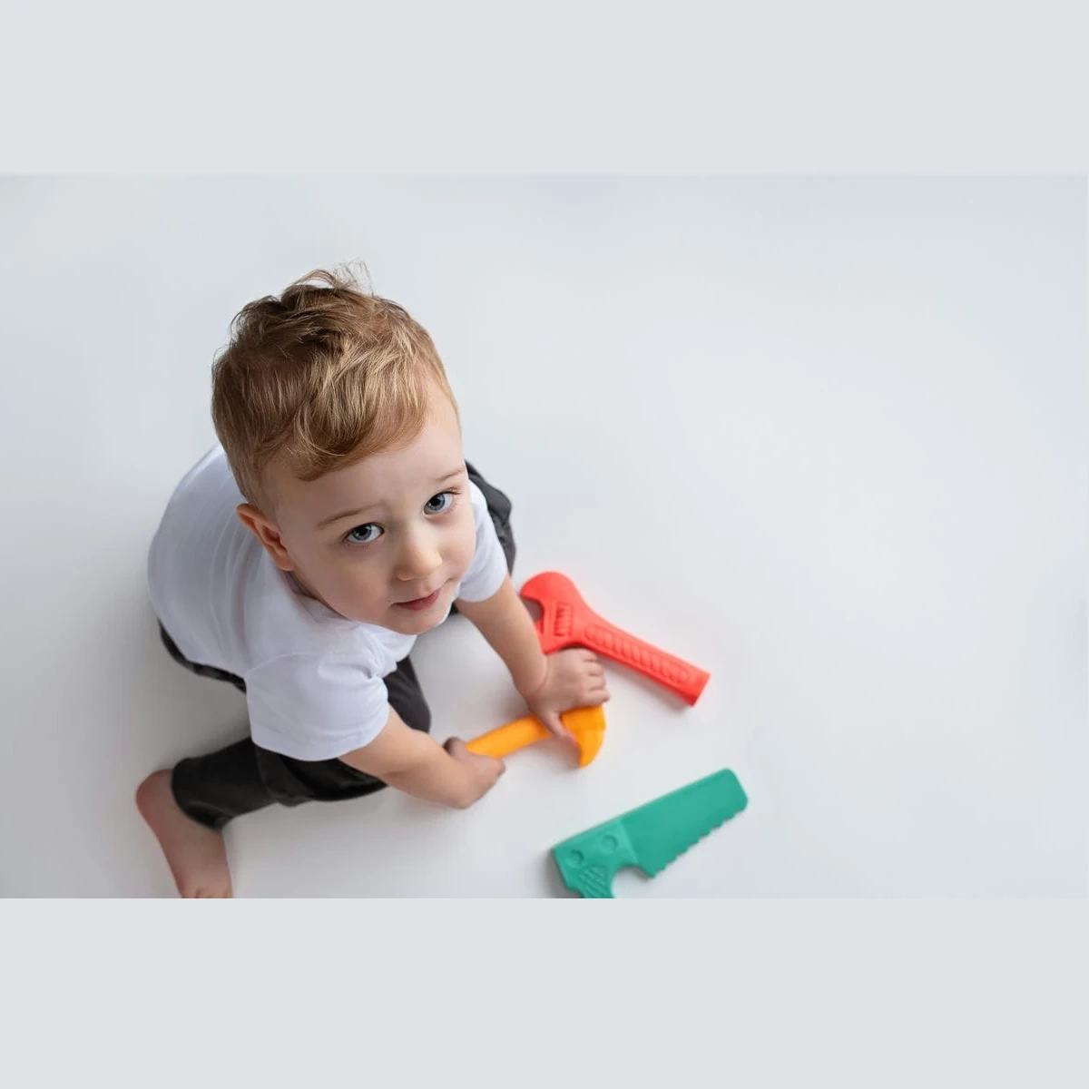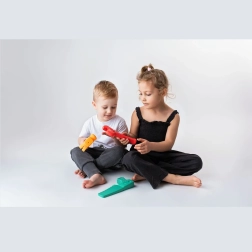 Scopri un set giocoso di tre strumenti morbidi – seghetto, martelletto e chiave – progettati per un gioco sicuro e lo sviluppo delle abilità. Grazie al materiale morbido, alle texture e ai colori pastello, favorisce lo sviluppo della motricità fine, la percezione sensoriale e la coordinazione occhio–mano. Gli strumenti sono leggeri, flessibili e sicuri anche per i più piccoli.