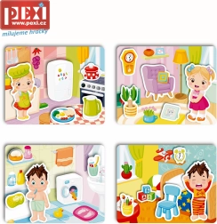 I puzzle con velcro Casa introducono i bambini, in modo giocoso, agli oggetti della vita quotidiana e al loro corretto posizionamento in casa. Grazie alle schede in plastica flessibile e ai pezzi con velcro, la manipolazione è facile e sicura. Il trattamento superficiale speciale è piacevole al tatto e incoraggia il gioco autonomo.