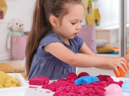 Con cinque sabbie colorate - rosa, viola, verde, blu e naturale - il tuo bambino si divertirà per ore con giochi creativi.