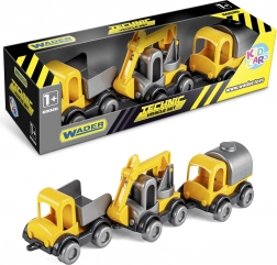 Scopri il divertente set di tre veicoli da cantiere KID CARS del marchio WADER, ideale per i più piccoli dai 12 mesi. Il set include un autocarro con cassone ribaltabile, una gru e un autobotte, che favoriscono lo sviluppo della fantasia e della creatività. La resistente struttura in plastica e le dimensioni compatte di 10 cm sono perfette per le manine dei bambini.