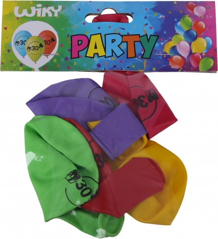Festeggia anniversari o compleanni con stile con questi palloncini gonfiabili da 30 cm in mix di colori e con il vistoso numero 30. Il pratico set da 5 pezzi è ideale per decorare sia interni che esterni.