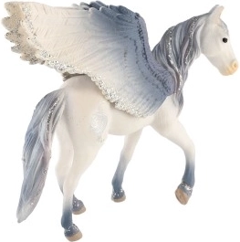 Questo suggestivo pegaso in bianco e grigio incanta con ali, criniera e posa elegante modellate con precisione. Grazie alla plastica resistente è ideale per il gioco quotidiano e come decorazione nella cameretta.