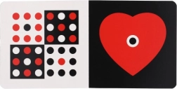 I neonati vedono solo a breve distanza e inizialmente distinguono solo il nero e il bianco. Questo libro è progettato per attirare la loro attenzione e promuovere il loro sviluppo. Contiene immagini ad alto contrasto e progressivamente introduce il rosso, giallo, blu e verde, il che aiuta a migliorare le loro capacità di distinguere i dettagli.