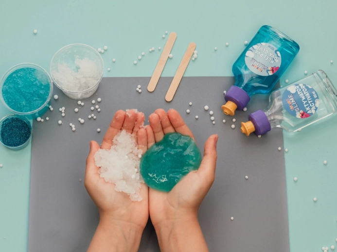 - Preparazione semplice – lo slime blu pronto va solo arricchito con la neve.