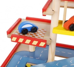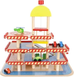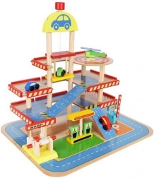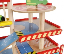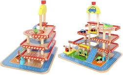 Colorato parcheggio in legno a più livelli che offre ore di divertimento ai bambini e sviluppa la motricità fine e l’immaginazione. Include autolavaggio, stazione di servizio, cassa, ascensore, eliporto e veicoli. La struttura stabile in legno sicuro e gli accessori realistici favoriscono il gioco creativo e l’apprendimento delle situazioni del traffico.