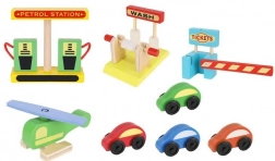 - 4 automobiline, elicottero, autolavaggio, stazione di servizio, cassa, ascensore, tratti di strada, set di montaggio