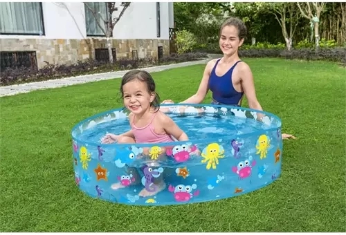 La piscina gonfiabile si riempie d'acqua e non necessita di pompa o ulteriori complicazioni.