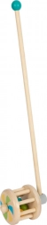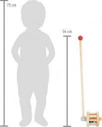 Questo veicolo di legno funge anche da sonaglio ed è un compagno sicuro e resistente per ogni bambino piccolo. Palline colorate vivaci rimbalzano selvaggiamente attorno al tamburo di legno quando si spinge il veicolo e emette un suono divertente.