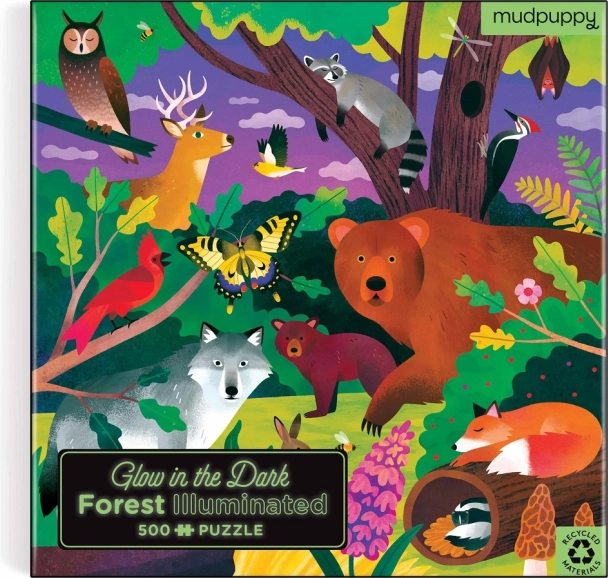Puzzle Mudpuppy animali del bosco che brillano al buio 500 pezzi