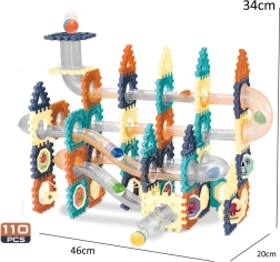 Set di costruzione creativo pista per biglie 110 pezzi per piccoli e grandi costruttori. Costruisci piste originali, gioca a domino e gare di biglie e sviluppa immaginazione, motricità fine e orientamento spaziale. Facilmente ampliabile e combinabile con altri set, adatta dai 3 anni.
