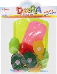 Divertente gioco da cucina per piccoli chef: set per tagliare la frutta con pezzi in plastica sicuri e un pratico vassoio. Sostiene la motricità fine, la coordinazione occhio-mano e la fantasia ludica senza rischio di ferite.