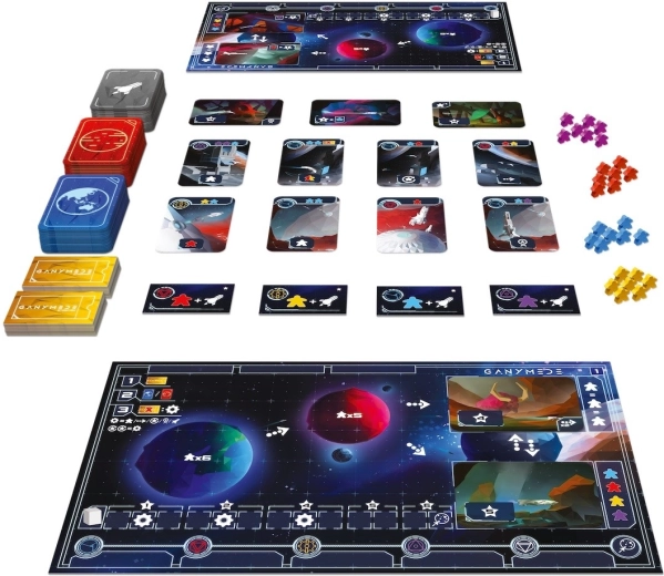 Ganimede è ideale per i giocatori che cercano un gioco veloce ma ricco di strategia. Il tempo di gioco è di soli 20-40 minuti ed è progettato per 2-4 giocatori, di età superiore ai 14 anni.