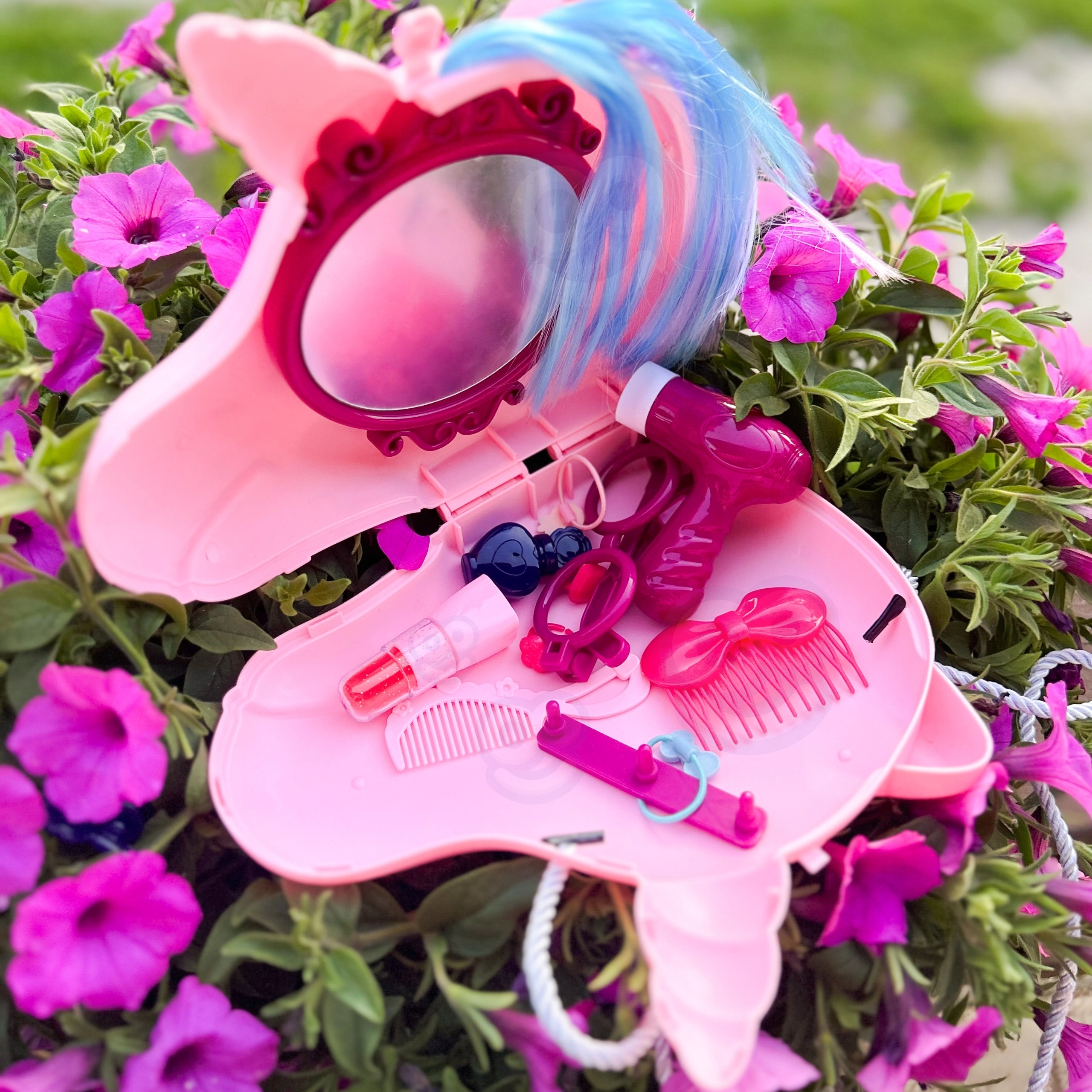 kinderkaptafel 2-in-1 beauty salon in handtas eenhoorn woopie