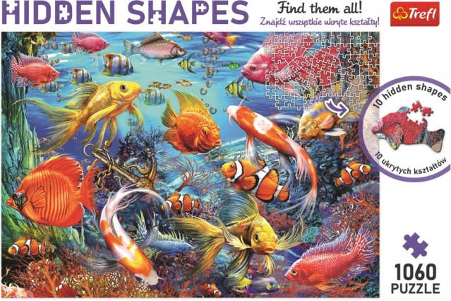 Hidden Shapes-puzzels combineren slim klassiek puzzelen met een zoekspel. Leg eerst het motief met het thema onderwaterwereld en zodra de afbeelding klaar is, begint de tweede fase – het zoeken naar verborgen vormen, die slim gecamoufleerd zijn in de gedetailleerde illustratie.