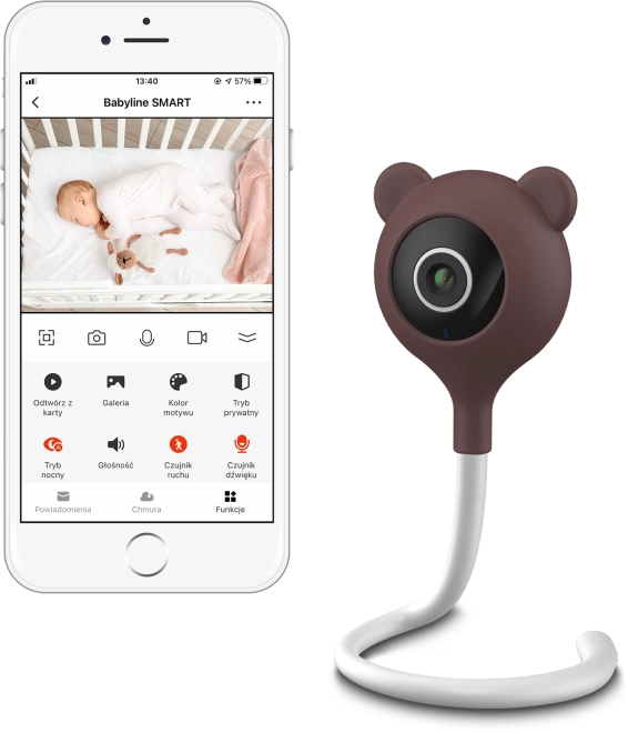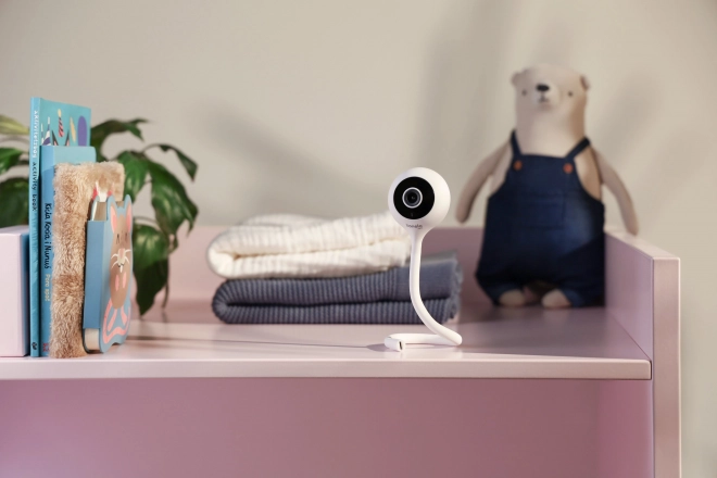 De flexibele standaard vergemakkelijkt plaatsing op meubels of het ledikant en het stijlvolle design met siliconen hoes met “berenoorjes” past perfect in de kinderkamer. Voor rustig inslapen zijn slaapliedjes en natuurgeluiden beschikbaar.