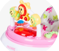 Het 4-in-1 loopstoeltje Friends is ideaal voor kinderen vanaf 6 maanden tot 12 kg die al zelfstandig kunnen zitten. Het combineert veilige ondersteuning bij de eerste stapjes met interactieve pret – de speeltray met lichtjes en geluid ontwikkelt zicht, gehoor en fijne motoriek. De robuuste constructie met brede basis zorgt voor stabiliteit en gemoedsrust voor ouders.