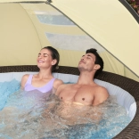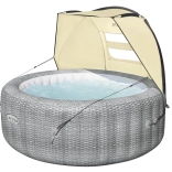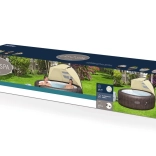 Deze schuilplek voor jacuzzi's biedt geweldige bescherming en privacy tijdens uw ontspanning in de tuin. Met ventilerende ramen die vrije luchtstroom garanderen en eenvoudige montage, is het een ideale aanvulling voor alle soorten Bestway jacuzzi's, behalve de modellen St. Lucia en Vancouver.