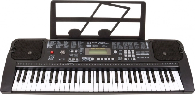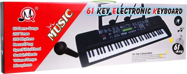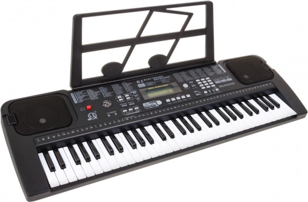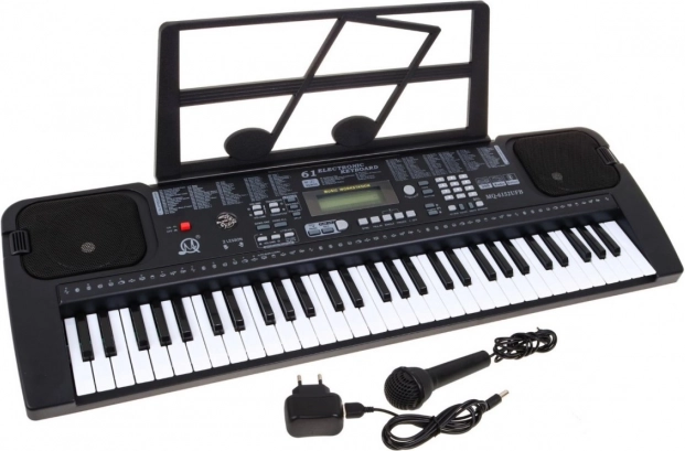 De set bevat een microfoon, voedingsadapter en muziekstandaard voor een complete muzikale ervaring.