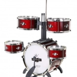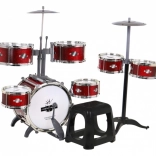 Rode drumstel met 7 drums + kruk + 2 bekkens + 2 drumstokken - 12 onderdelen