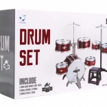 De grote tweedelige drumset is een muzikaal speelgoed bedoeld voor kinderen vanaf vijf jaar. De set bestaat uit 6 drums, 2 bekkens, 2 drumstokken en een comfortabele kruk. Drummen leert het kind focus en concentratie. Het vermindert stress, verbetert de stemming en traint de coördinatie van handen en voeten.