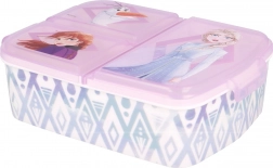 Een originele en functionele multi-snackbox die elke dag leuker maakt voor kinderen. Dankzij de drie aparte vakken scheid je eenvoudig fruit en groente, een sandwich en kleine lekkernijen. De duurzame afwerking kan stoten en vallen bij dagelijks gebruik aan, en de aantrekkelijke motieven uit de film Frozen 2 vallen bij kinderen in de smaak.