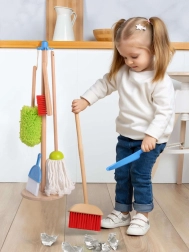 Lucy & Leo Houten schoonmaakset biedt uw kinderen de mogelijkheid de basis van schoonmaken op een speelse en leuke manier te leren. Met deze set kunnen kinderen echte schoonmaakactiviteiten nabootsen en hun motoriek oefenen.