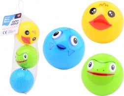 De zachte balletjes van Happy World bieden een veilige en leuke speelervaring voor de allerkleinste kinderen. In de vorm van dierenkopjes – kikkertje, visje en eendje – nodigen ze uit om te ontdekken, te knijpen en te rollen en ondersteunen ze op natuurlijke wijze fantasierijk spel.
