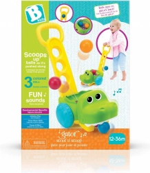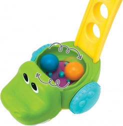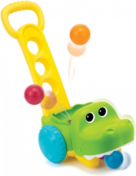Een leuke duwspeelgoed in de vorm van een krokodil die tijdens het rijden gekleurde balletjes oppakt, die vervolgens bovenaan eruit springen, en bij beweging vrolijke geluiden maakt. Stimuleert de grove motoriek, coördinatie en actief spel bij kinderen.