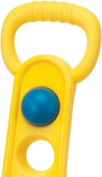 De ergonomische gele handgreep met knop is ideaal voor kleine handjes en maakt duwen en stabiel vasthouden makkelijker.