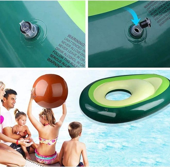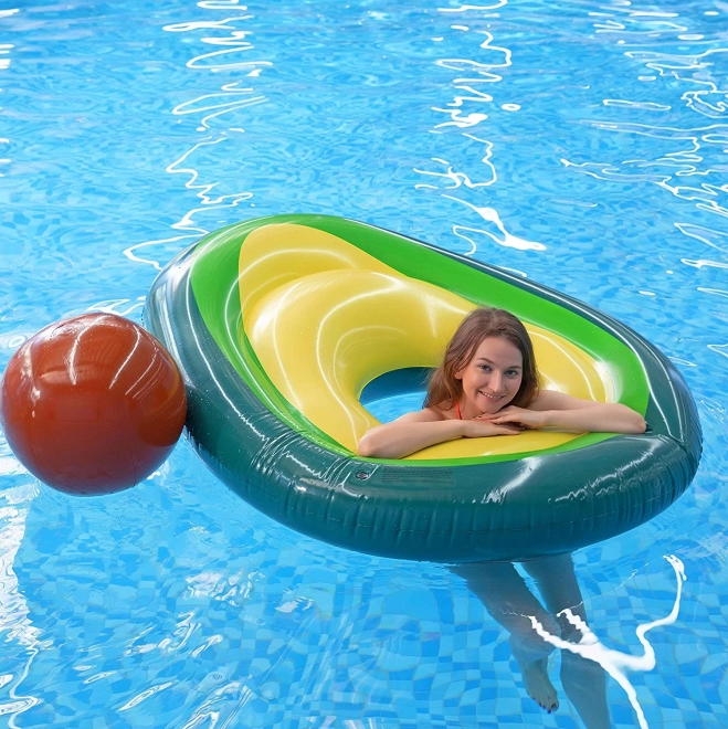 Het originele luchtbed in de vorm van een rijpe avocado fleurt elk zwembad en strand op. De verwijderbare “pit” werkt als een losse bal voor in het water of strandspellen, of als kussen/rugsteun tijdens het luieren op het water. De open kern verandert het luchtbed in een stabiele ring voor relaxen of zwemleren.