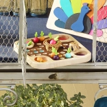 Het traditionele spel “Mens erger je niet!” is nu verrijkt met een kindvriendelijk design, waarbij kinderen kleurrijke worteltjes kunnen oogsten en in een nestvormig mandje plaatsen. Ideaal voor spelenderwijs leren en het versterken van familiebanden.