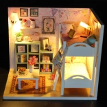 Ontdek de magie van miniaturen met de creatieve bouwset Cherylin. Deze gedetailleerde set biedt een gezellige kamer met stapelbed, boekenkast en accessoires die je zelf bouwt, lijmt en versiert. Inclusief LED-verlichting, beschermend plexiglas en een uitgebreide handleiding. Een geweldige keuze voor ontspanning en het ontwikkelen van motoriek, verbeeldingskracht en geduld.