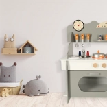 De creativiteit van kinderen wordt gestimuleerd door nieuwe recepten te bedenken voor hun “restaurant” en door het oefenen van hun handvaardigheid bij het snijden van speelvoedsel. De kitchen is niet alleen een bron van plezier, maar ook een mooie decoratieve toevoeging aan de kinderkamer.