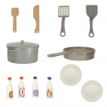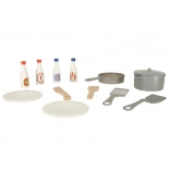 De set omvat een rijke set accessoires, waaronder een kunststof koekenpan, pan met deksel, houten bestek en borden. Voor het perfectioneren van de gerechten zijn er ook vier verschillende soorten sauzen.