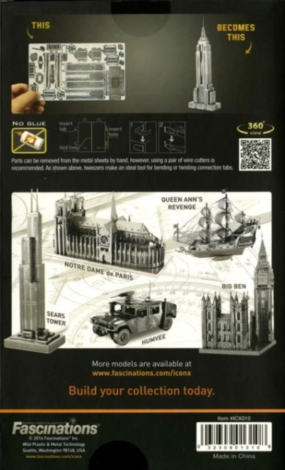 Maak je eigen decoratieve replica van het iconische gebouw Empire State Building met het METAL EARTH model. Geniet van de vreugde van een gedetailleerde constructie en bewonder de nauwkeurigheid van de afwerking.