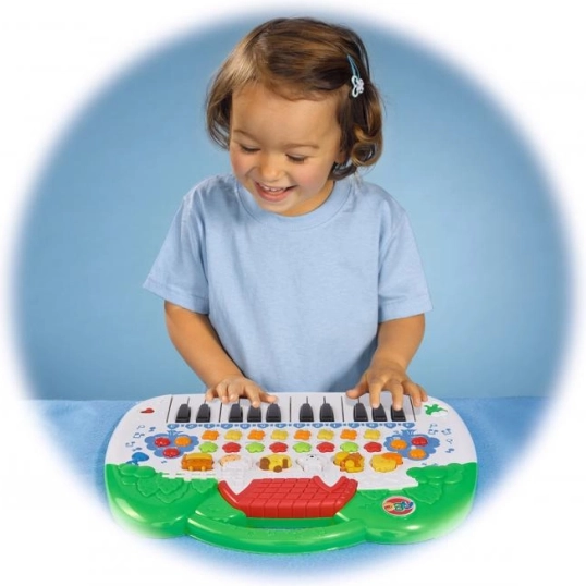 Geef kinderen muzikale pret met deze interactieve piano met dieren. Dankzij de acht klanken van muziekinstrumenten en zes dierengeluiden maken kinderen spelenderwijs kennis met de wereld van muziek en geluid. De piano biedt ook acht vrolijke melodieën, lichteffecten en een intuïtieve bediening die creativiteit stimuleert en de motoriek ontwikkelt.