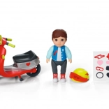 Ontdek stedelijke avonturen met mini-pop Simon en zijn stijlvolle scooter. Het compacte formaat van 7 cm past perfect in kinderhanden en de rode scooter is gemakkelijk te bedienen, thuis en onderweg. De set stimuleert creatief spel en het vertellen van verhalen.