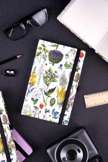 Elegant gelijnd notitieboek met kruidenmotieven, geselecteerd door de bekende persoonlijkheid Kateřina Winterová. Biedt hoogwaardig papier, een praktische elastiek en een pocket voor kleinigheden – ideaal voor dagelijks schrijven, plannen en als dagboek. Valt op door een stijlvol botanisch design, het formaat 13 × 21 cm en een betrouwbare elastische sluiting.