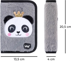 De set bevat ook een klassiek eenlaags etui met twee kleppen en een kwaliteitsrits, en een praktische zak van stevig, afwasbaar materiaal met een voorvak met rits. De hele set is versierd met het populaire pandamotief en is voorzien van reflecterende elementen voor betere zichtbaarheid.