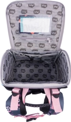 Het klapmechanisme geeft direct vanaf de schoolbank toegang tot de inhoud. Binnenin vind je een organizer met elastiek, een transparant vak voor het rooster en voldoende ruimte voor boeken en lunch.