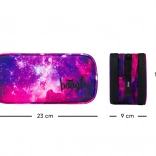 De Studente-etui Galaxy combineert functionaliteit en stijl met een uniek galaxydesign in paarse en roze tinten. Gemaakt van hoogwaardig textiel, biedt het drie afzonderlijk afsluitbare compartimenten met rits voor eenvoudige verdeling en organisatie van uw spullen. De buitenkant is gemaakt van duurzaam materiaal dat de inhoud van de etui beschermt. Dankzij de overzichtelijke interne indeling vindt u ruimte voor verschillende accessoires, zoals gummen, slijpers en andere schoolbenodigdheden. Een praktisch lusje zorgt ervoor dat de etui gemakkelijk kan worden gedragen of aan een rugzak kan worden gehangen.