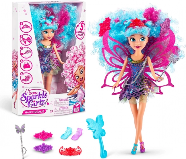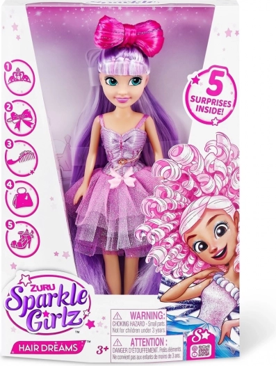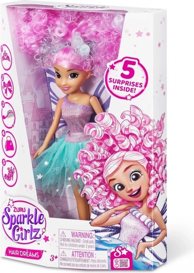 ZURU Sparkle Girlz Hair Dreams introduceert een collectie met unieke kapsels in diverse texturen en kleuren. Elke pop heeft een prachtige, glinsterende outfit die je kunt combineren met andere poppen uit deze serie. Stap in een wereld waar fantasie geen grenzen kent! Verzamel 3 geweldige poppen.