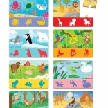 Leuk educatief spel voor de allerkleinsten, waarin kinderen dierlijke jongen aan hun moeders koppelen. Grote, veilige en stevige stukken liggen goed in de hand; kleurrijke illustraties stimuleren logisch denken, fijne motoriek en oplettendheid. Ideale eerste puzzel voor de leeftijd 2–4 jaar.